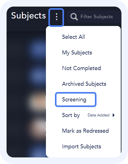 Subjects set up with continuous screening will have a profile picture with a green border. The status for the subject will also show as Screening.