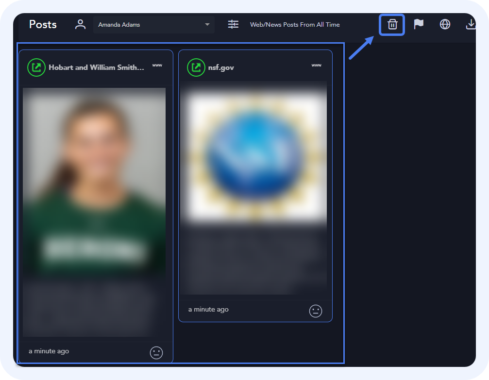 Alternatively, you can multi-select web/news posts by holding down CTRL or COMMAND (Mac) keys and multi-selecting the web/news posts you want to remove. To then remove them, you click the trashcan icon on the Posts page menu bar (top right).