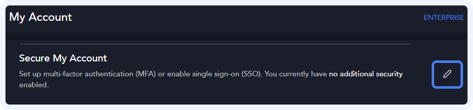 On the My Account page, click the pencil icon for the Secure My Account section.