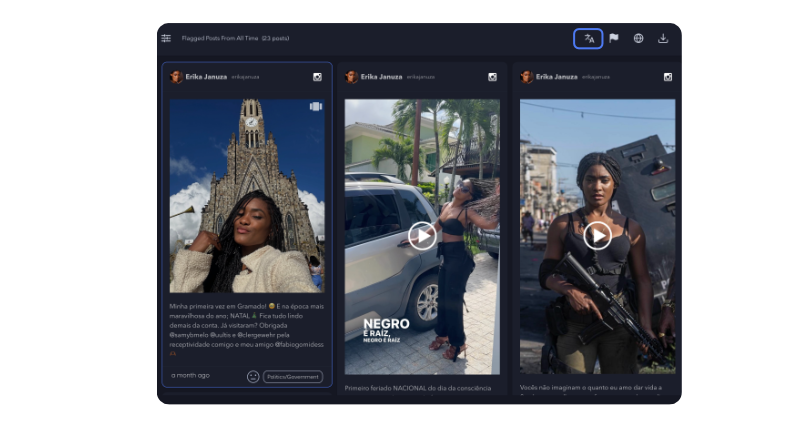 Once on the flagged posts view, the translate all flagged posts icon will appear in the menu bar. You can toggle this on and off to translate and then un-translated all of the flagged posts.