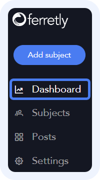To access the dashboard, click Dashboard in the left navigation. The button may appear as a graph icon depending on your screen size.