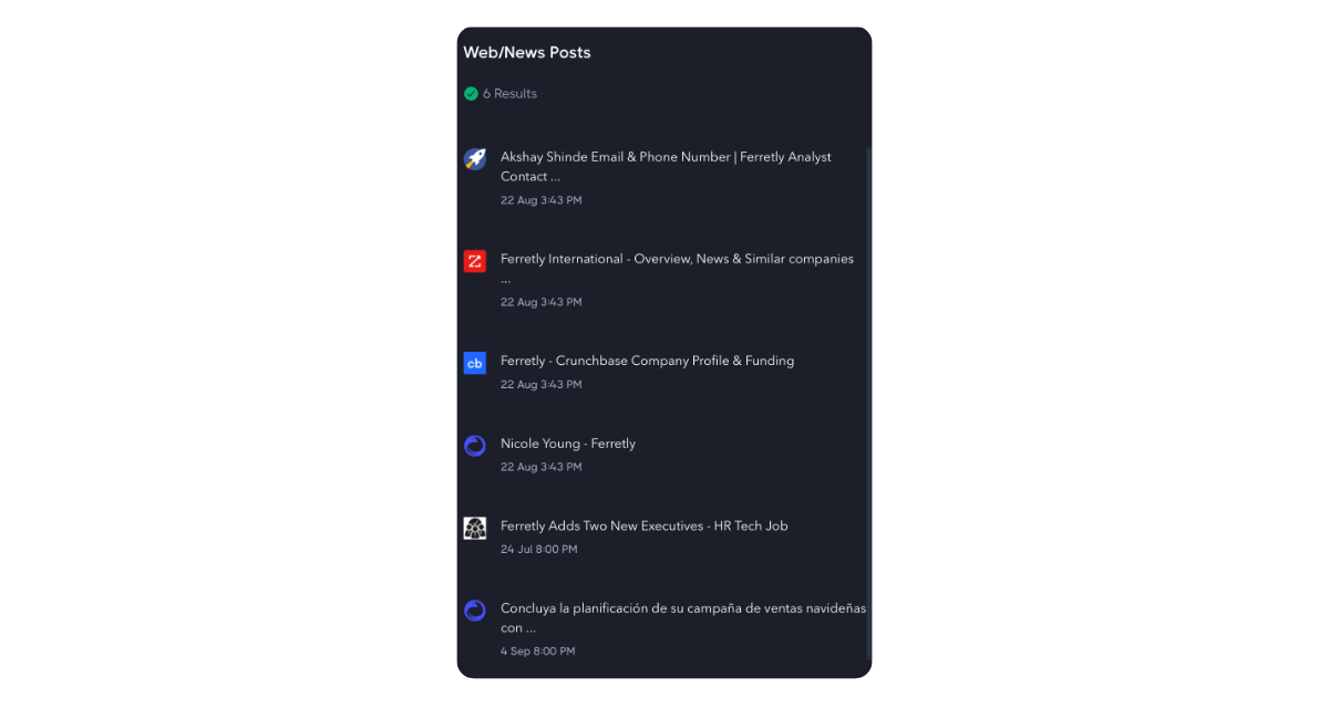 The card on the right of the dashboard will show all web/news and media results associated with your subject. You can click an article to view the original source.