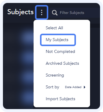 On the Subject page, click the three vertical dots in the top left of the page and select My Subjects in the dropdown.